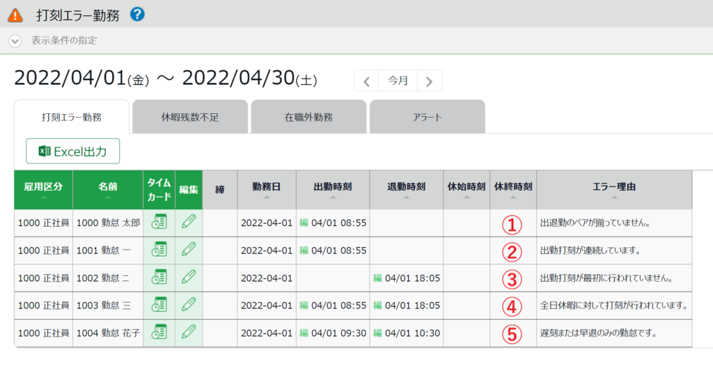 勤務状況確認