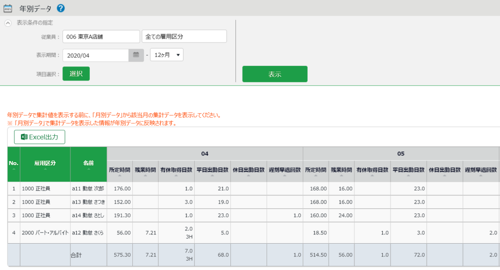 • 残業時間の管理