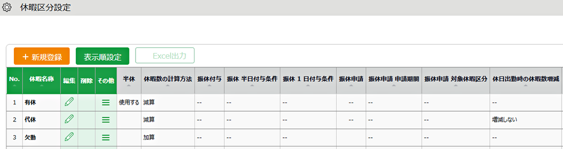 - 休暇区分設定画面で表示項目を自由にカスタマイズできるようになります!