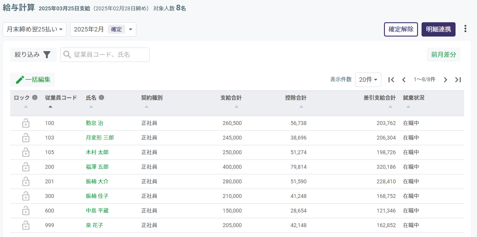 従業員ごとの計算結果ロック機能で不用意な操作ミスを防止できます。